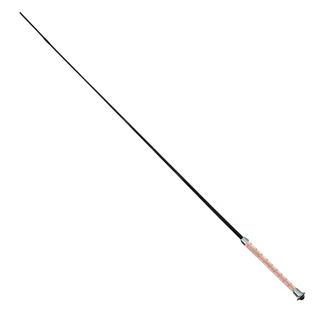 Der Griff besteht aus rutschfestem, metallicfarbenem Material. Die Gerte ist mit silbernen Beschlägen in Hochglanz veredelt.