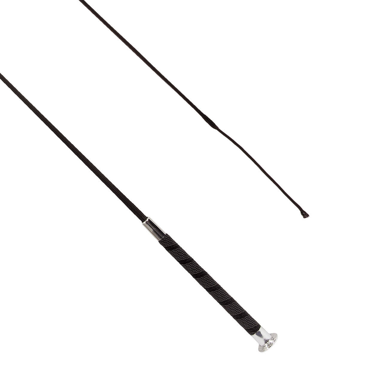 Der Griff ist mit speziellem, rutschfestem Material überzogen. Die Chrombeschläge verleihen der Gerte einen eleganten Stil.