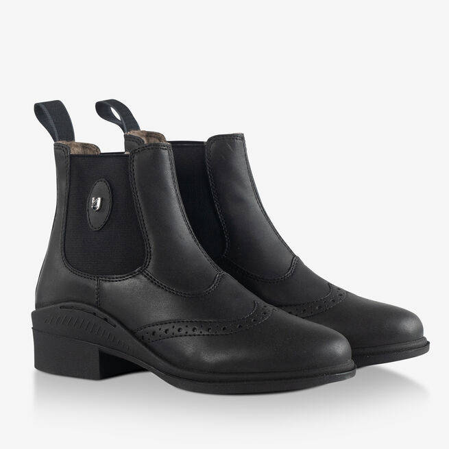 Die Reitstiefeletten Maine Kids sind modisch und praktisch zugleich. Mit polierten Akzenten und aus hochwertigem PU-Leder sind sie eine klassische und strapazierfähige Wahl. Der elastische Einsatz am Knöchel und die Zuglaschen vorn und hinten sorgen für ein einfaches Anziehen. Das Innenfutter aus Wolle und Polyester-Kunstleder ist kuschelig, die robuste Sohle ist für jede Witterung geeignet. Mit den Horze Maine Kids Winterreitstiefeletten kannst du nichts falsch machen.