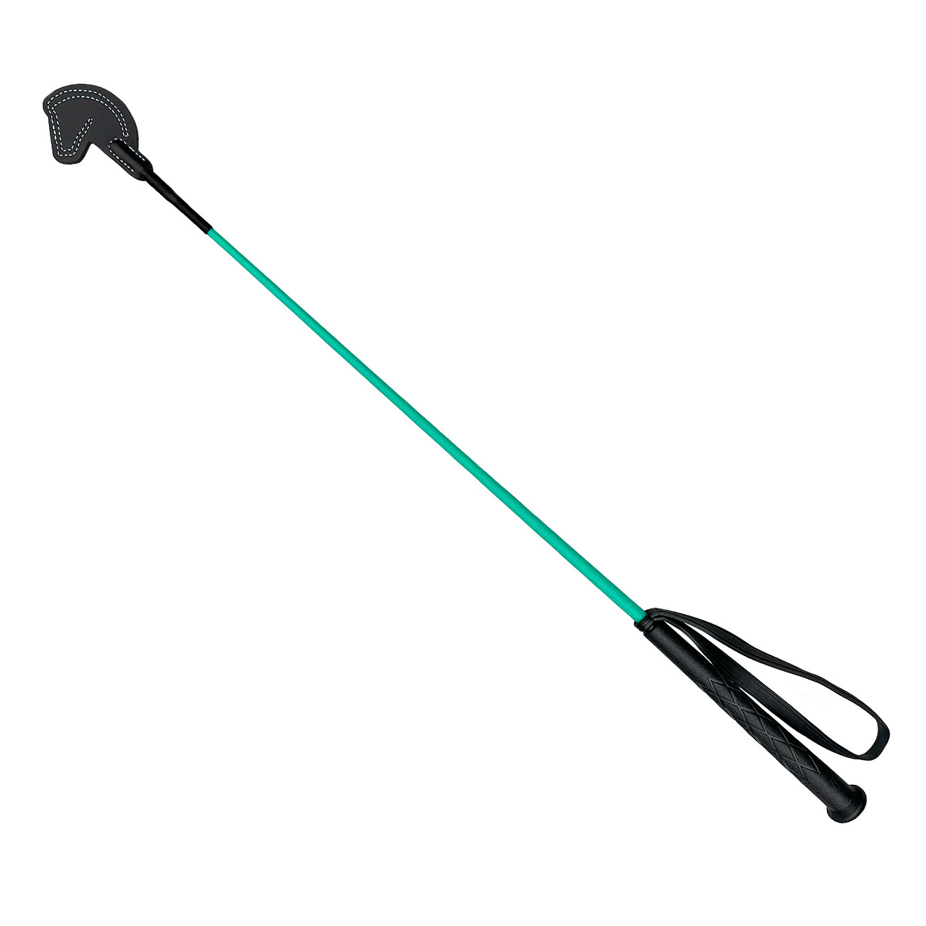 • Ende mit Klatsche in vorm eines Pferdekopfes, aus imitiertem Leder