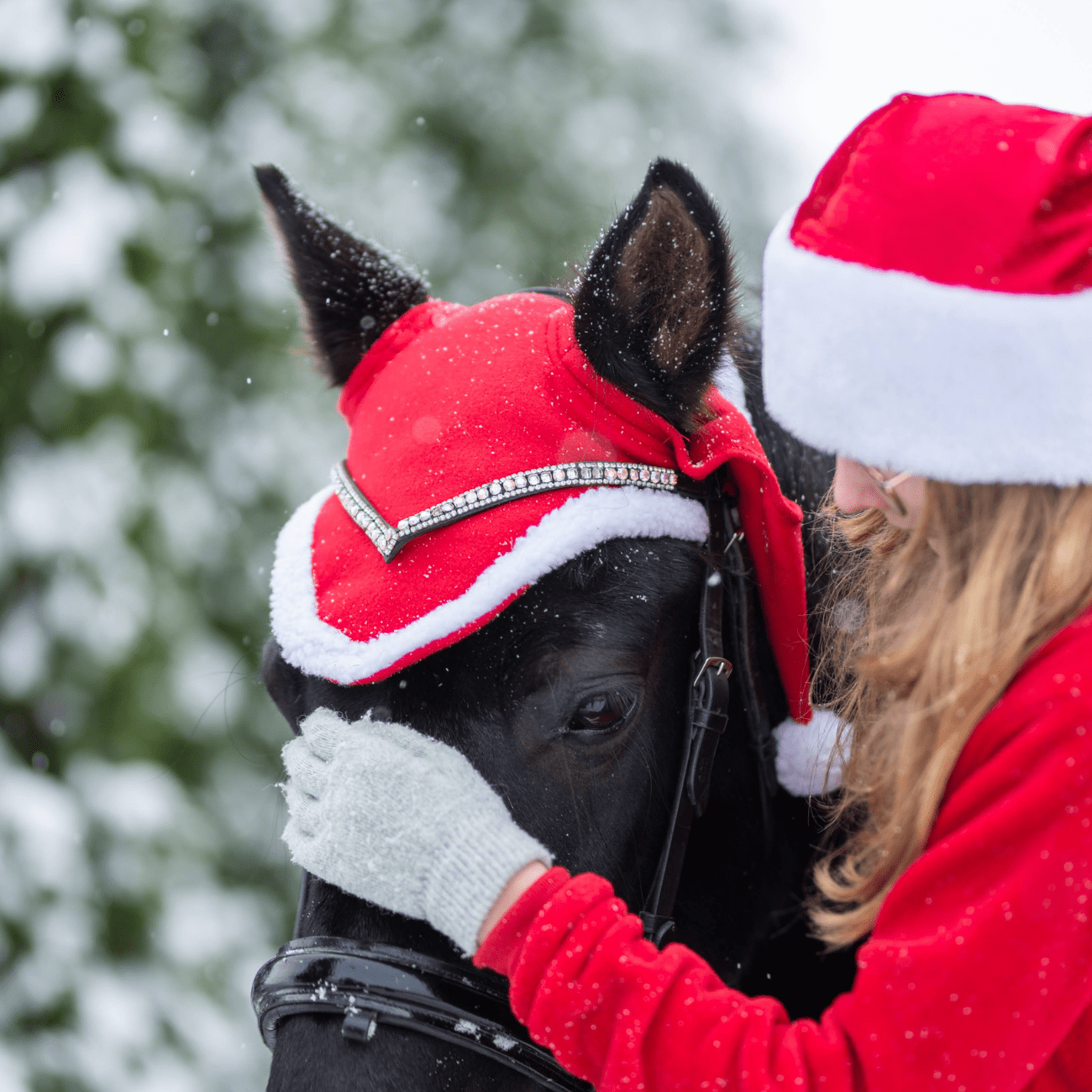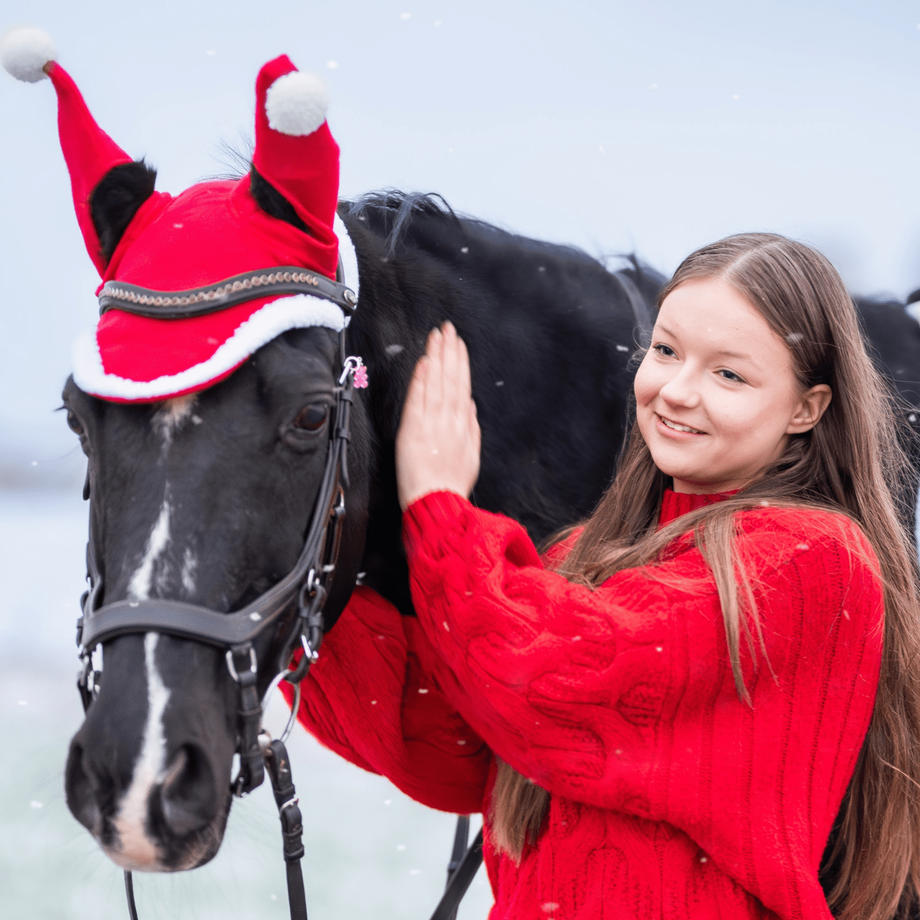 - die Weihnachtsmütze mit Löchern für die Pferdeohren