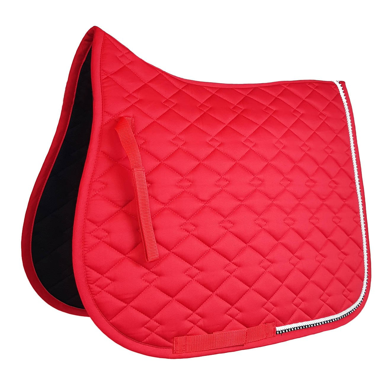 - in einem gestepptem Muster, mit Schnürren und Zirkonen verziert, was die Schabracke zur Geltung bringt