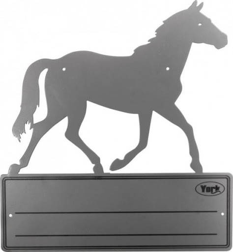 • ein sehr praktisches Boxenschild mit einem Pferdemotive