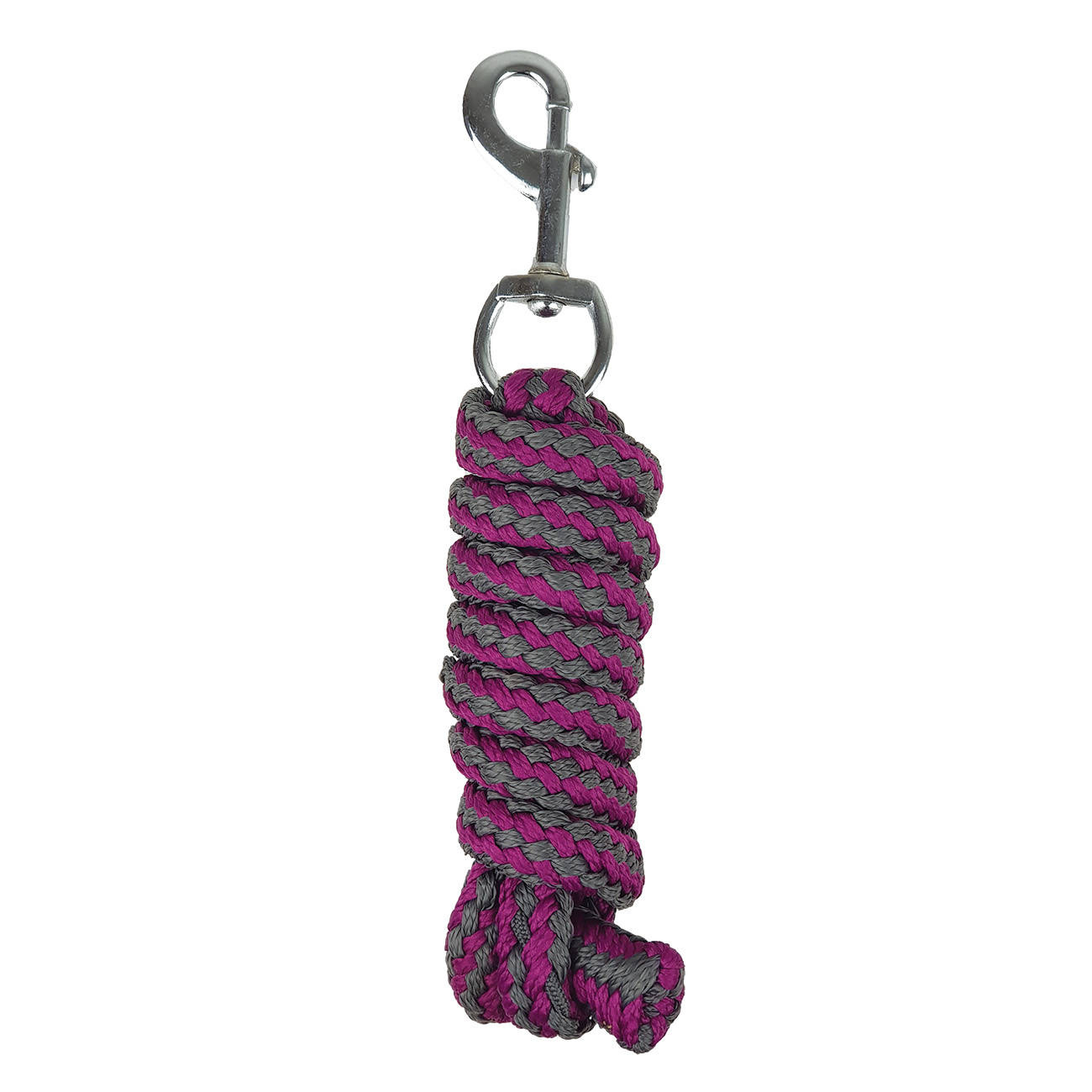 Dwukolorowy, pleciony uwiąz z obrotowym karabińczykiem.