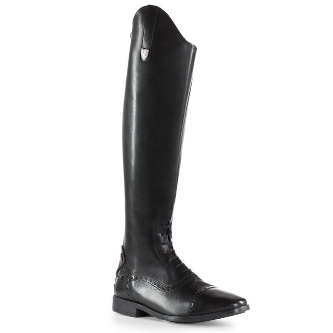 Oficerki to nieodzowny element stroju jeździeckiego, kiedy czapsy i sztyblety nie sprawdzają się. Piękne oficerki ze skóry brazylijskiej posiadają suwak z tyłu i elastyczną klapkę, dzięki czemu wyglądają gładko i elegancko. Gumowa podeszwa, różnorodność rozmiarów stopy i szerokości cholewki zapewniają poczucie komfortu. Podbicie zdobione paskiem z dziurkami, zamocowanymi na stałe elastycznymi sznurówkami i ładną podpórką na ostrogę. Podszycie wykonano z miękkiego, wygodnego zamszu. Emblemat Z na górze cholewki obejmuje mały metolowy znaczek z wysadzanym kryształkami logo. Skórzany pasek z zatrzaskiem na górze i dole suwaka zabezpiecza zapięcie buta.