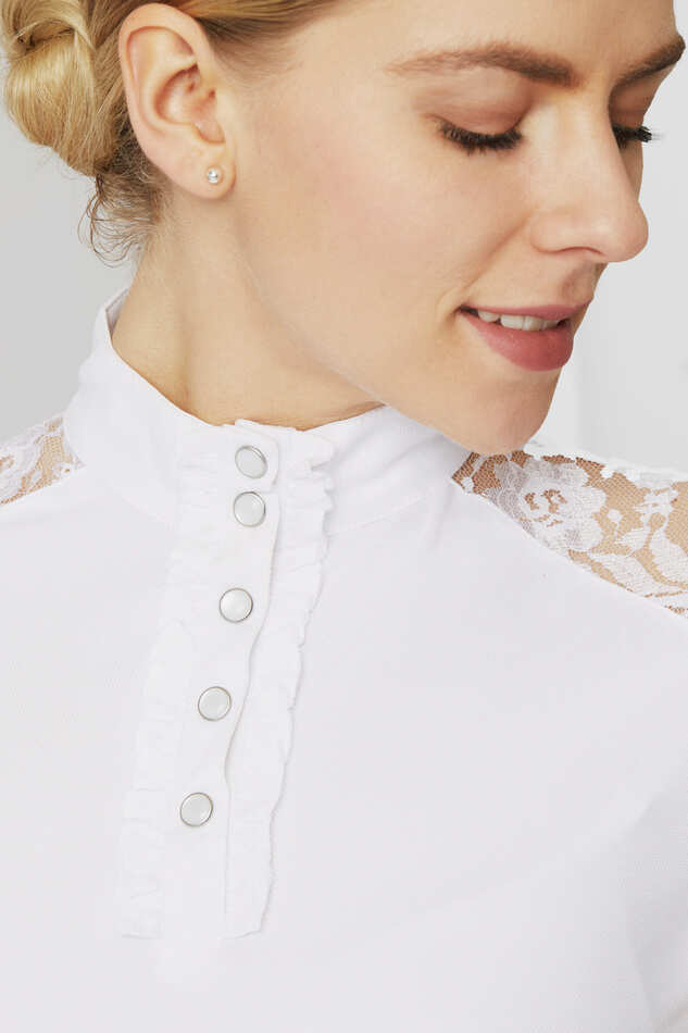 - delikatna koronka na ramionach i ozdobne guziki dodają jej szyku