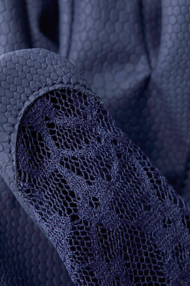 Model B Vertigo został wykończony atrakcyjną wstawką z przewiewnej koronki na grzbiecie dłoni. Wnętrze dłoni pokryto elastyczną warstwą antypoślizgowej skóry syntetycznej. Pasek na mankietach zapewnia optymalne dopasowanie.