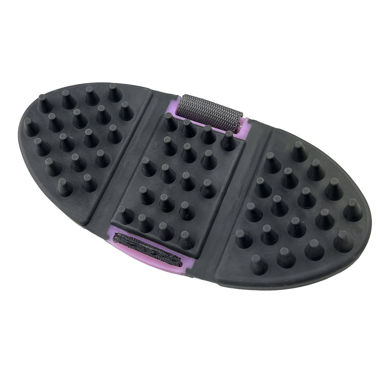 • regulowany pasek na dłoń i elastyczny wierzch sprawiają, że szczotka dobrze układa się w dłoni i dobrze dopasowuje się do kształtu ciała konia
