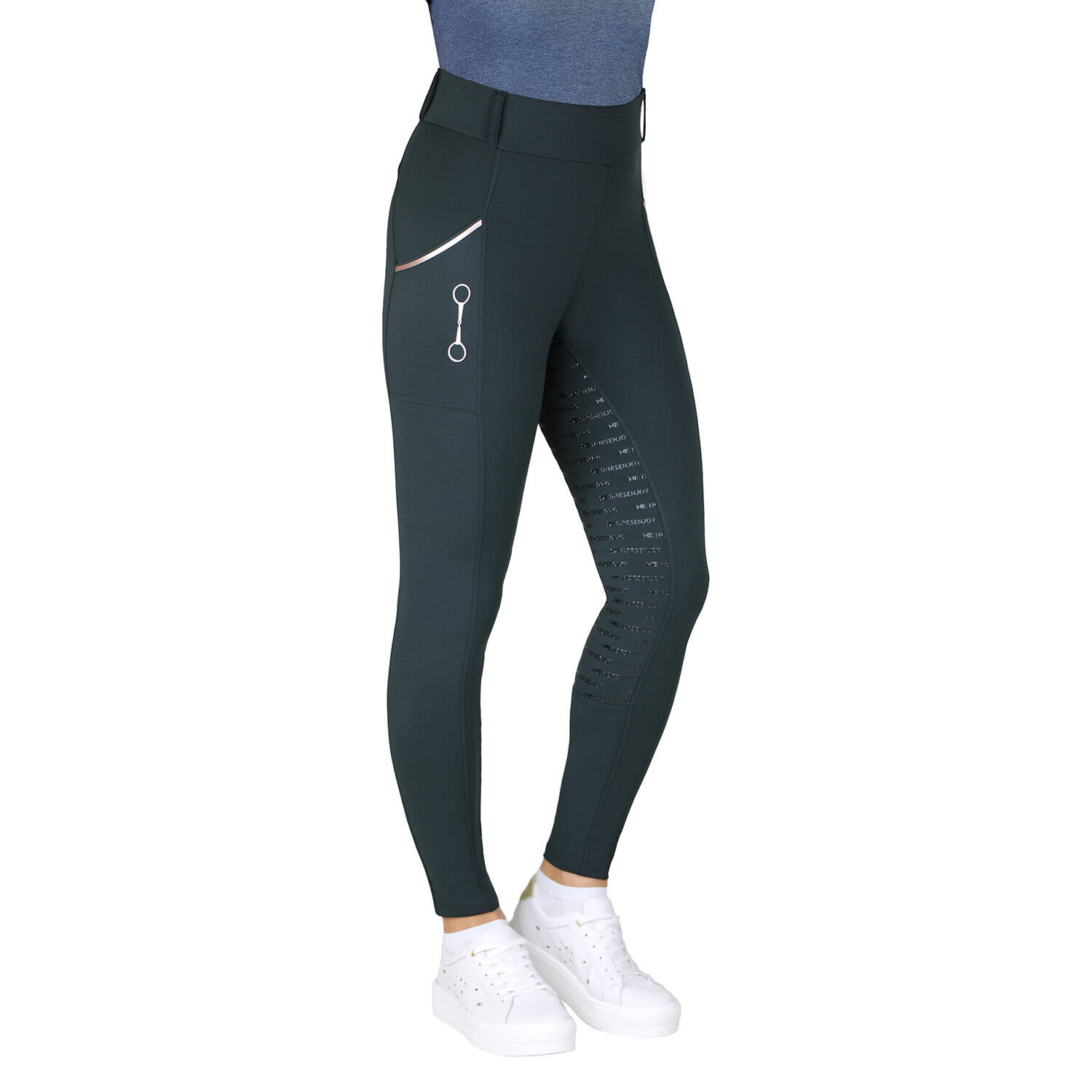 Wykonane z elastycznej, sportowej dzianiny, dzięki czemu nie będą krępować ruchów jeźdźca.