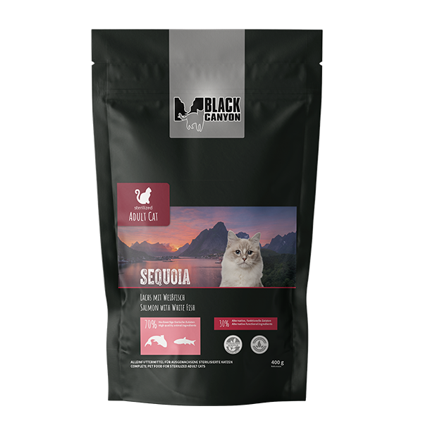 Sucha karma Black Canyon Sequoia – Łosoś z białą rybą, została stworzona z myślą o: kotach sterylizowanych/kastrowanych, kotach ze skłonnością do otyłości, kotach starszych.