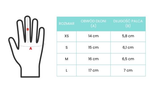 - wierzch dłoni / wewnętrzna strona dłoni: 70% poliuretan, 30% poliamid