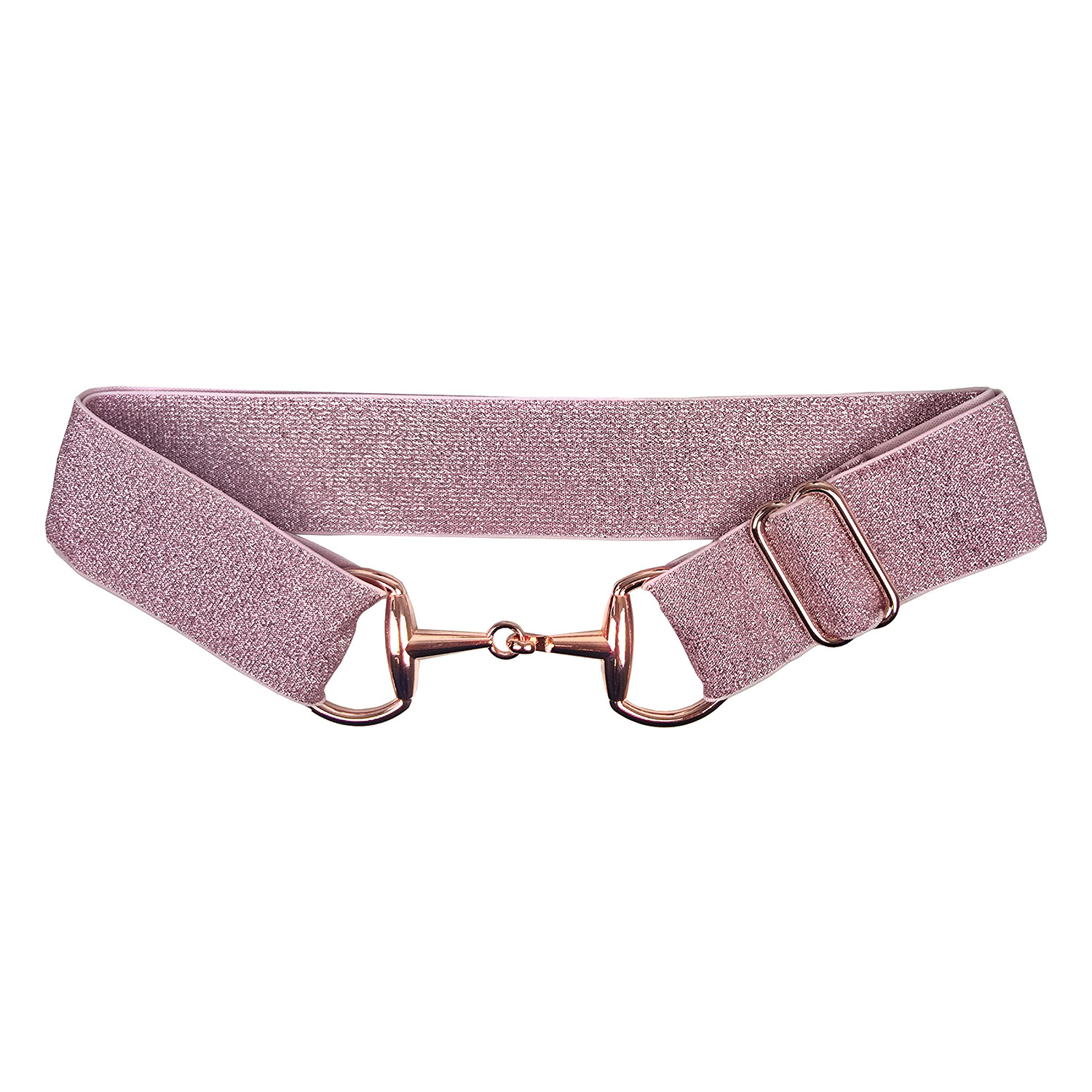 Elegancki, brokatowy pasek do spodni z ozdobnym zapięciem w kształcie wędzidła.