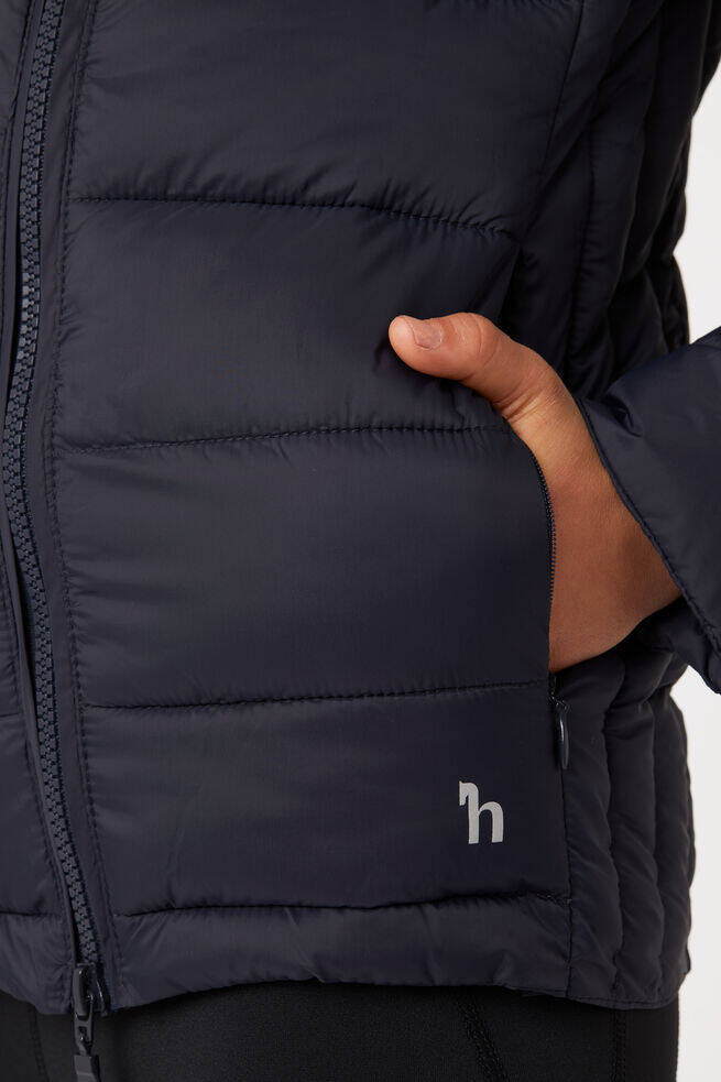 Skrojona specjalnie dla dzieci, kurtka wygląda świetnie i idealnie sprawdza się w stajni w chłodne, letnie poranki. Tradycyjna kurtka z lekkim wypełnieniem świetnie ogrzeje Cię podczas jazdy wcześnie rano lub późno wieczorem. Dwukierunkowy suwak, proste ukośne kieszenie i lekkie wypełnienie sprawiają, że kurtka idealnie nadaje się na wiele okazji. Wyraźne kolory dodają uroku i pasują do innych rzeczy z kolekcji.
