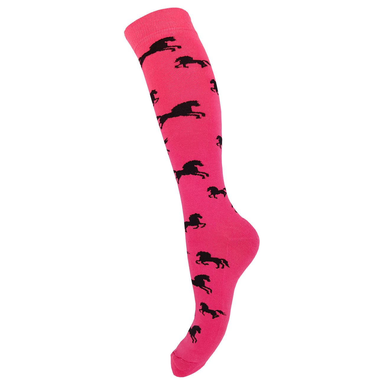 Urocze podkolanówki ozdobione wzorem w koniki.