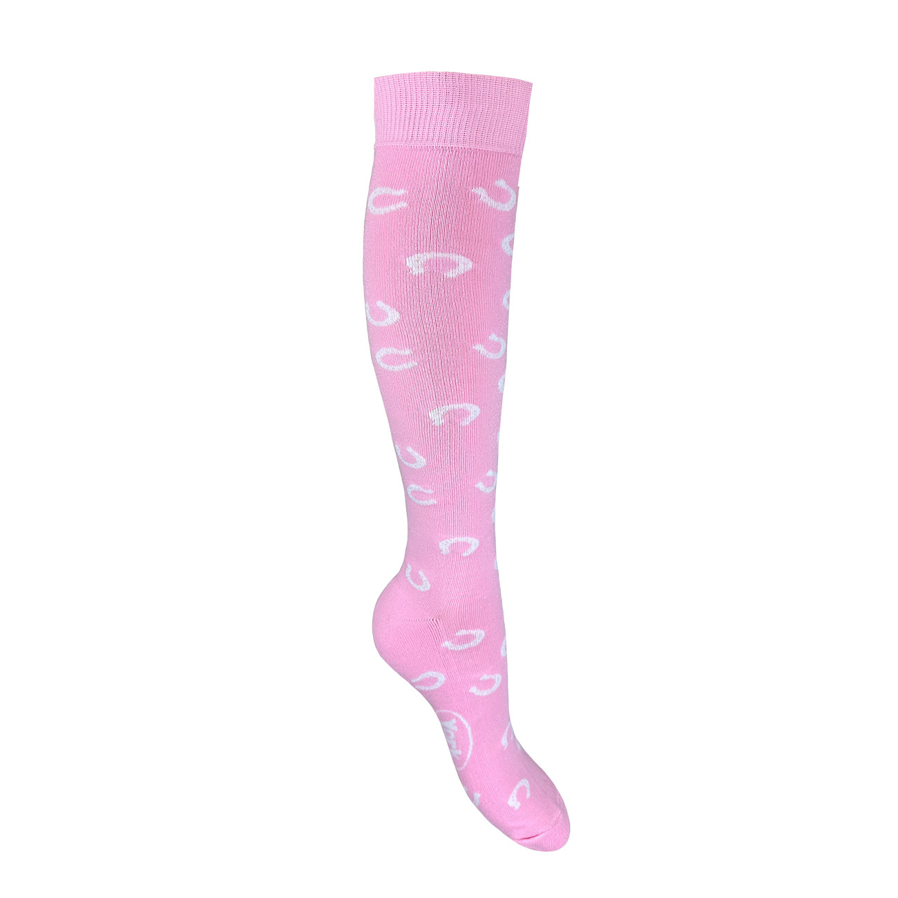 Podkolanówki jeździeckie z charakterystycznym wzorem w podkówki.