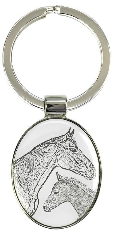 - owalny breloczek do kluczy ozdobiony wizerunkiem klaczy i źrebięcia