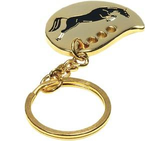 - masywny, płaski breloczek z pięknym wizerunkiem konia w skoku o oryginalnym, zaokrąglonym kształcie